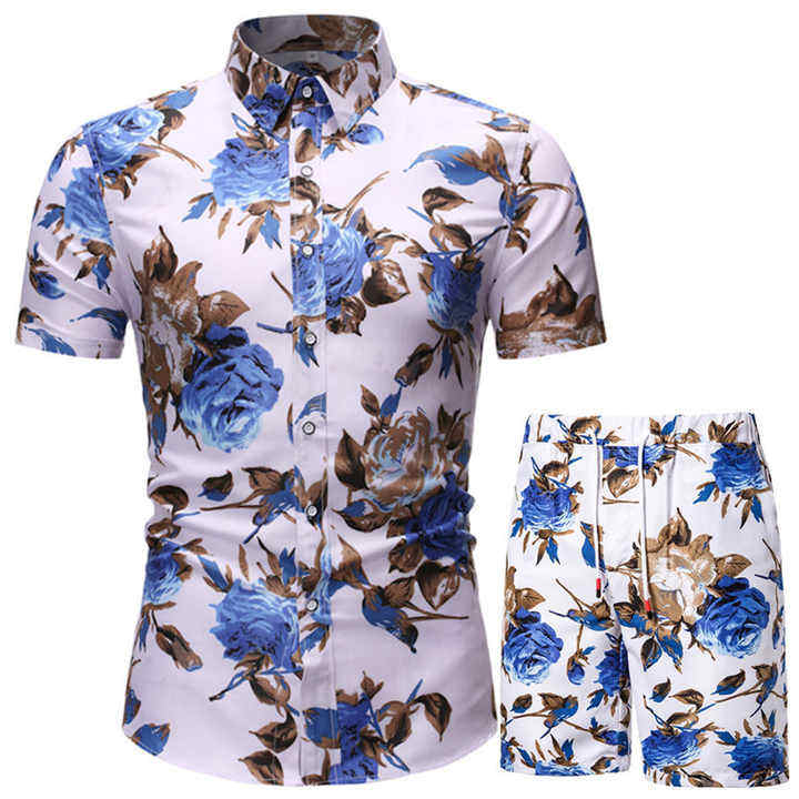 Nueva camisa floral informal de verano de manga corta con estampado Hawaiano para hombre y traje de dos piezas de playa conjunto de prendas de vestir exteriores de moda