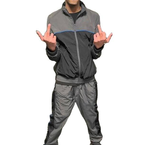 Conjunto Deportivo de Nylon para Hombre, con Logotipo Personalizado, Dos Piezas, Chaqueta con Cierre y Parches, Pantalones Transpirables de Poliéster, Cortavientos, para Invierno