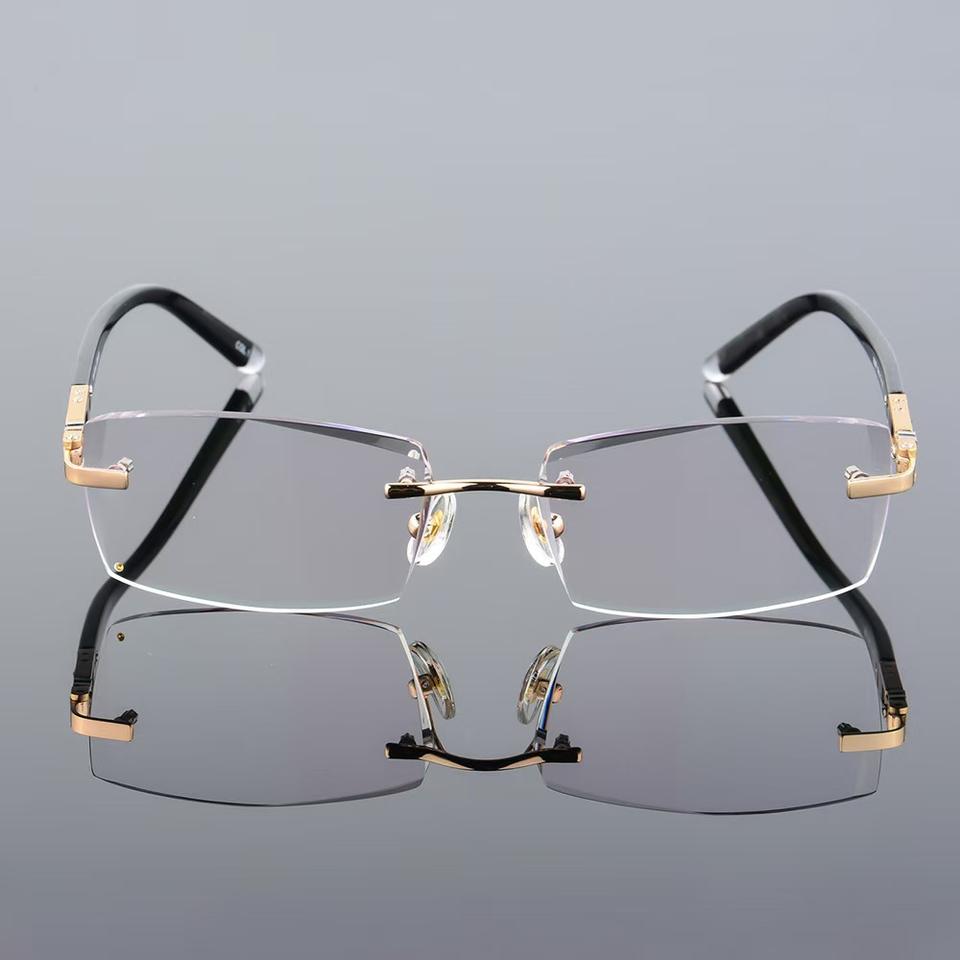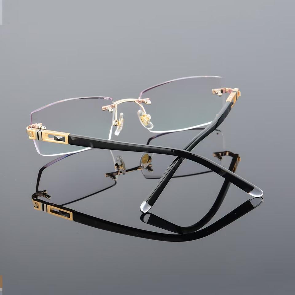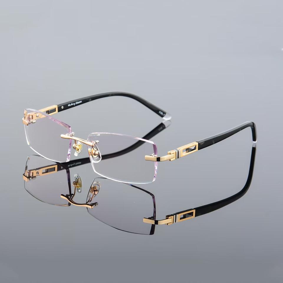 Gafas Ópticas de Aleación sin Montura para Hombre con Adornos de Diamantes, Montura Moderna para Lectura y Miopía