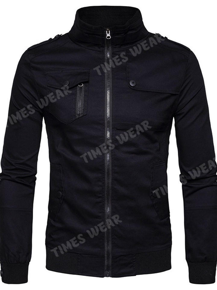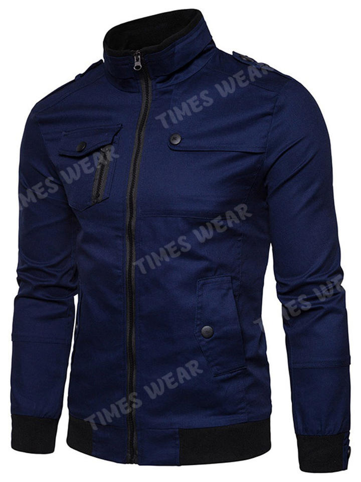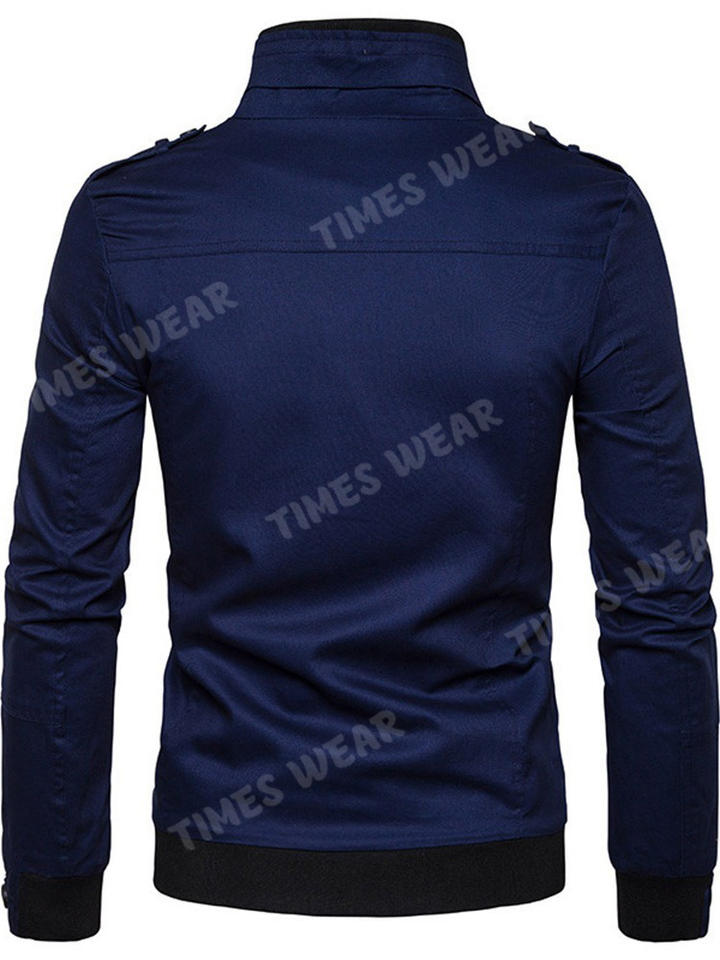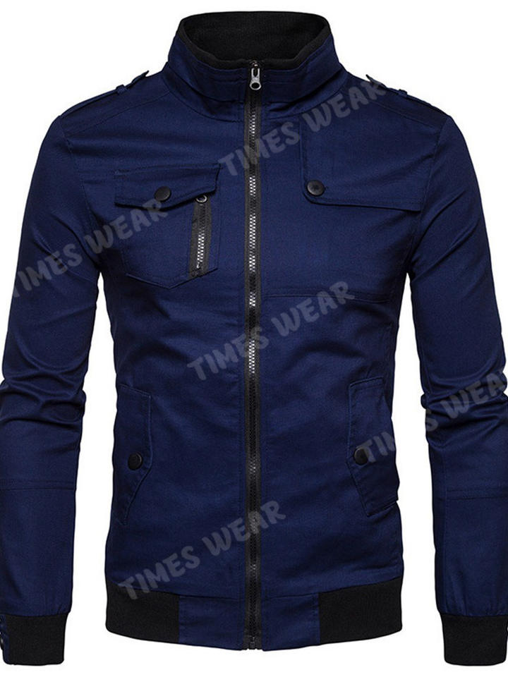 Chaqueta de moda para hombre, para exteriores, con cuello levantado, cremallera, bloque de Color, a la moda
