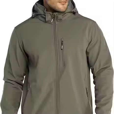 Chaqueta Softshell Ligera para Hombre, con Forro Polar, Capucha, Cortavientos, Resistente al Agua, para Senderismo de Invierno, Cuello Alto, Formal