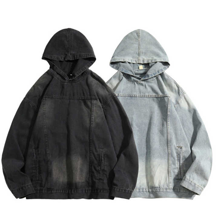 Sudaderas con Capucha de Mezclilla Lavada al Ácido Extra Grandes para Hombre, 400 Gsm, Estampadas, Gruesas, para Invierno, al por Mayor