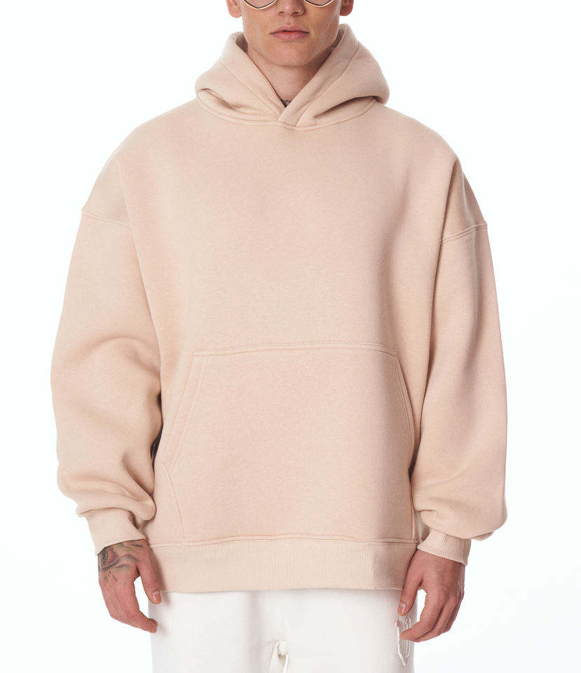 Sudadera con Capucha Beige Básica Extra Grande para Hombre, Mezcla de Algodón/Poliéster, Estampado, Ropa Urbana de Invierno, Calidad Premium, OEM Personalizado, Felpa