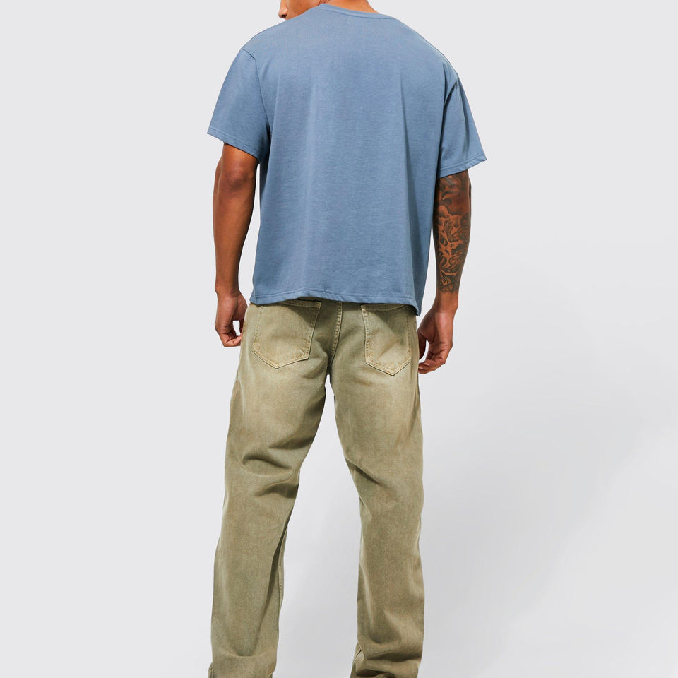Camiseta Oversize de Corte Cuadrado para Hombre, Algodón Peinado Liso, Personalizable, Cuello Pequeño, Hombro Caído, Logo Frontal, Estilo Streetwear