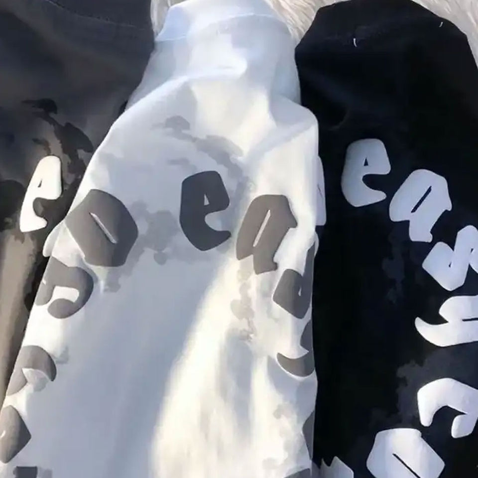 Camiseta de Hombre Oversize con Logotipo Personalizado, Estampado de Letras, Ecológica, de Lujo, con Hombros Caídos, Impresión Puff, 100% Algodón