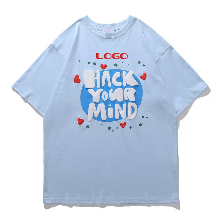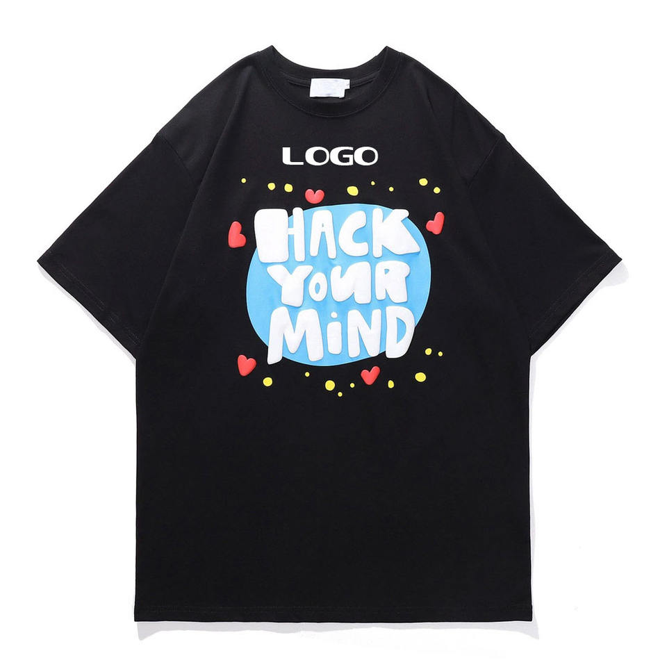 Camiseta de hombre extragrande con logo personalizado, de lujo, con hombros caídos y estampado en relieve, 100% algodón.
