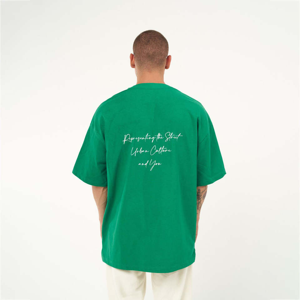 Camiseta verde de gran tamaño para hombre, respetuosa con el medio ambiente, cuello redondo, Spandex, algodón, ajuste holgado, ropa de calle, hombro caído, manga corta, estilo urbano