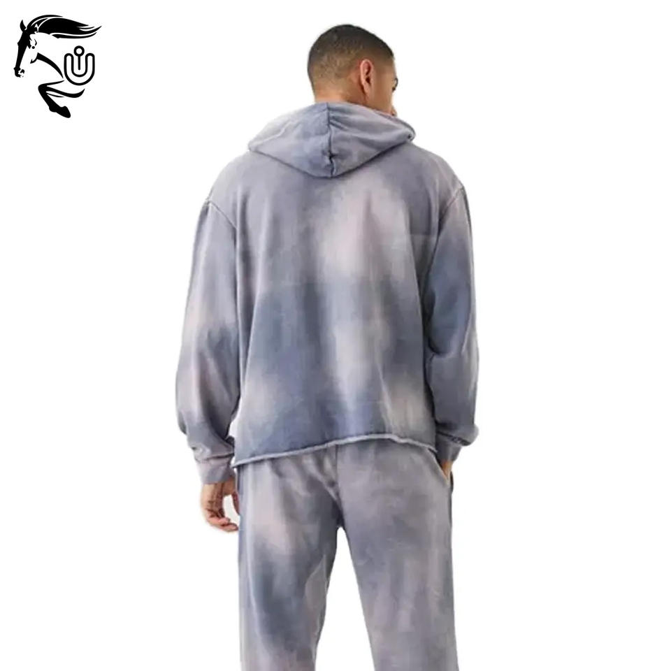 Chándal con capucha blanqueada por el sol de gran tamaño para hombre, pantalones apilados, sudaderas con capucha con hombros caídos, chándal de invierno de dos piezas de talla grande