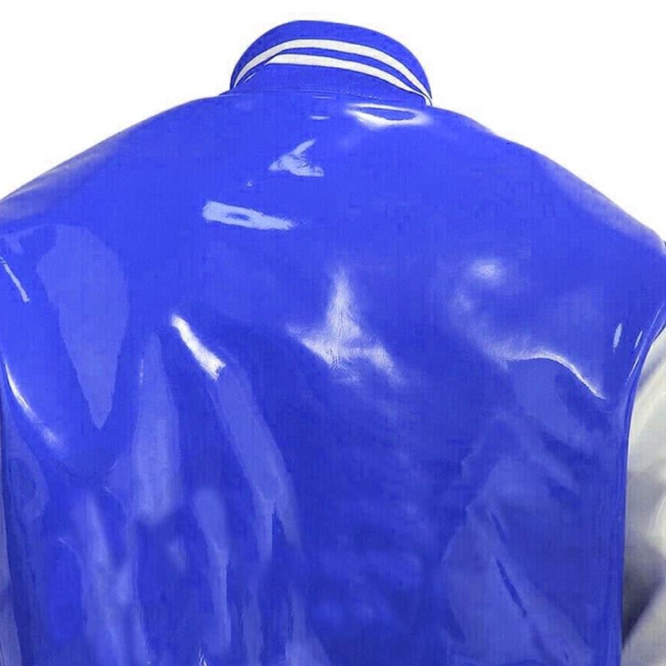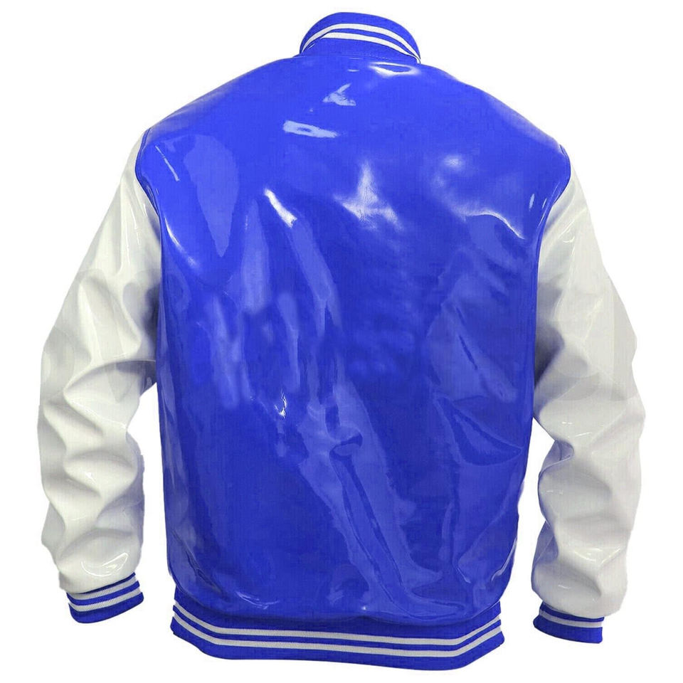 Chaqueta Varsity de Cuero PVC para Hombre, Estilo Clásico de Béisbol, Ropa Urbana con Cuello Alto y Personalización Frontal