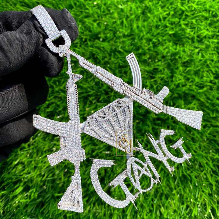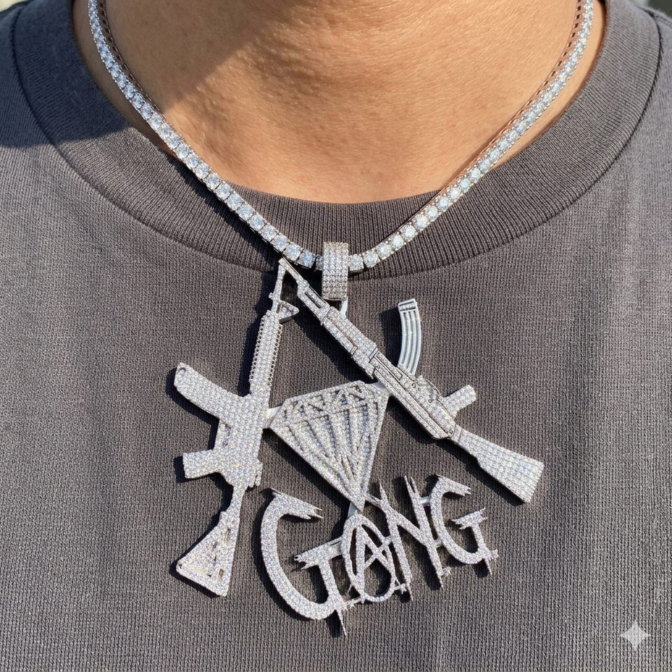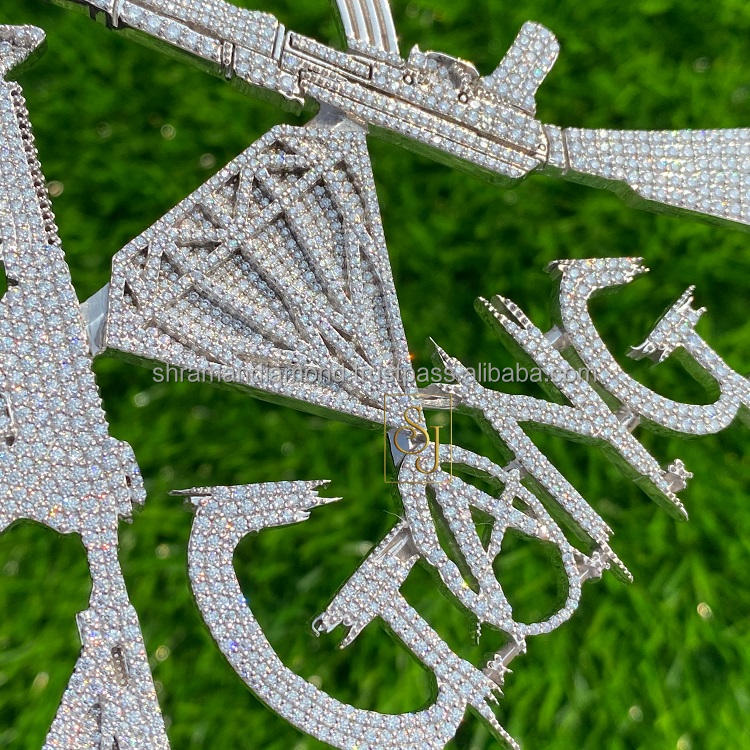 Colgante Personalizado de Moissanita con Forma de Espada, Chapado en Oro Blanco sobre Plata 925, Estilo Hip Hop para Hombre, Ideal para Fiestas