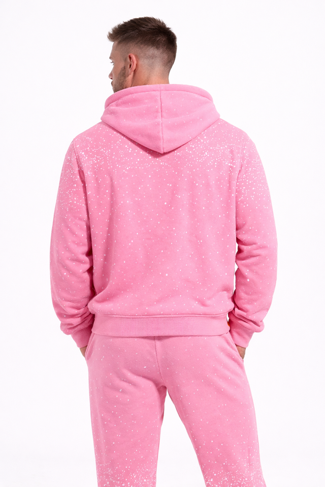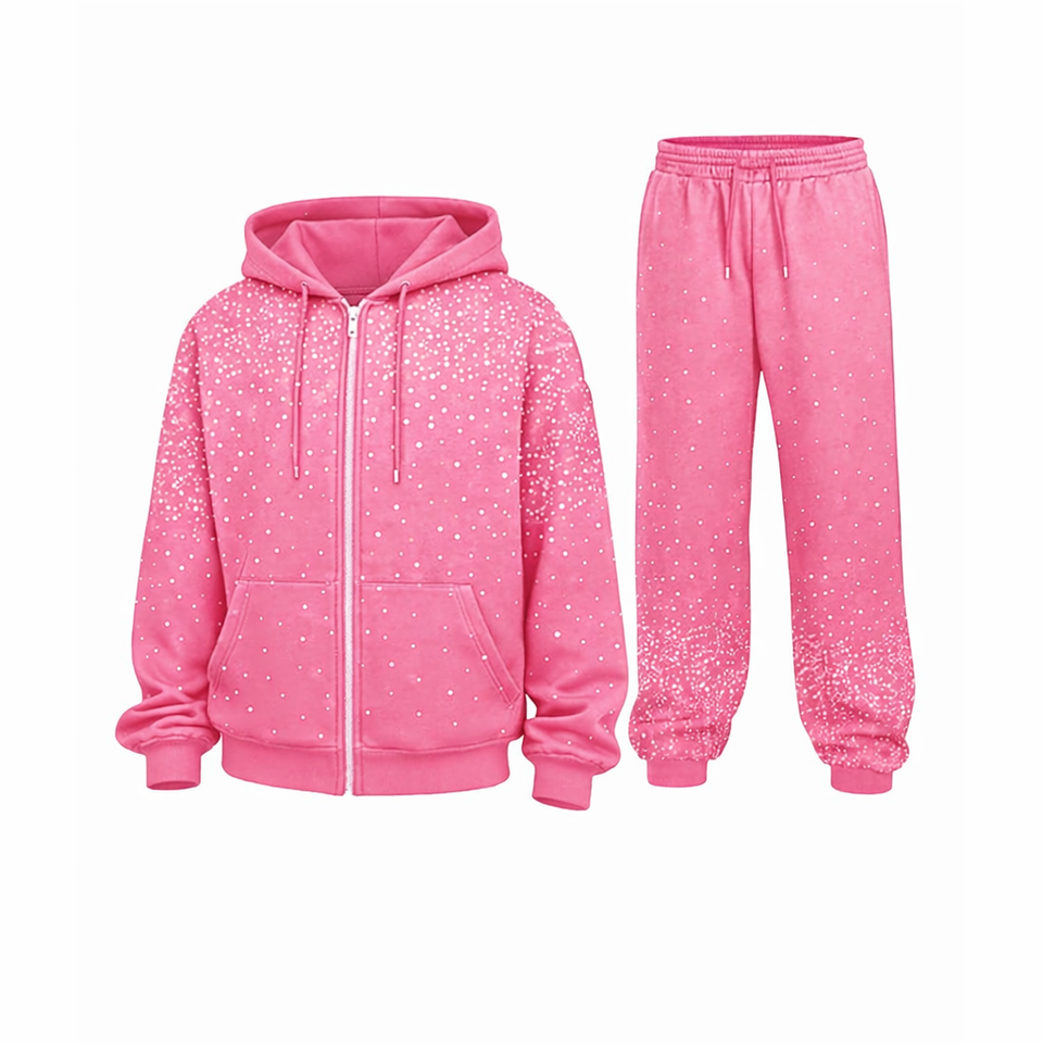 Conjunto de chándal rosa con pedrería para hombre, sudadera con capucha y pantalones deportivos con cremallera, ropa informal brillante para gimnasio, conjunto de moda