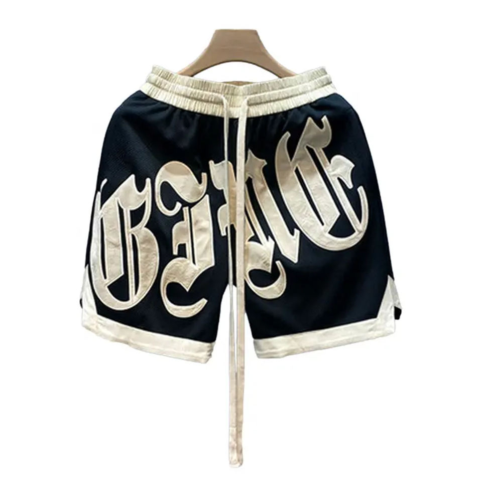 Pantalones cortos de malla para gimnasio de poliéster de talla grande para hombre, bordados personalizados, para baloncesto, correr, deporte, informales, transpirables, para pantalones cortos