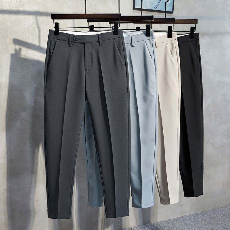 Pantalones de Traje de Negocios para Hombre, Talla Grande, Color Sólido, Corte Recto, Estilo Británico, Algodón Elástico, Cordón Ajustable, Ropa Formal Informal