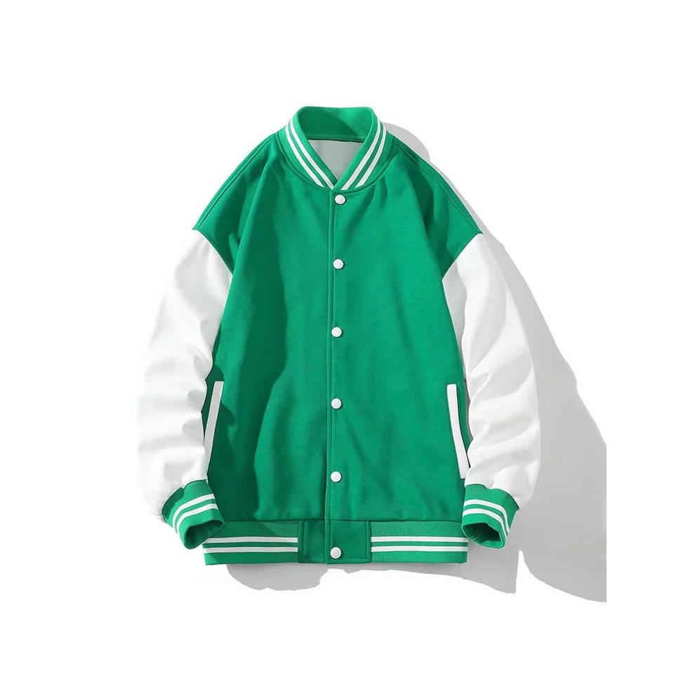 Chaqueta Bomber de cuero de lana Varsity informal de invierno de talla grande para hombre, chaqueta de béisbol universitaria personalizada con cuello vuelto negro para hombre