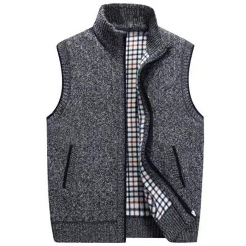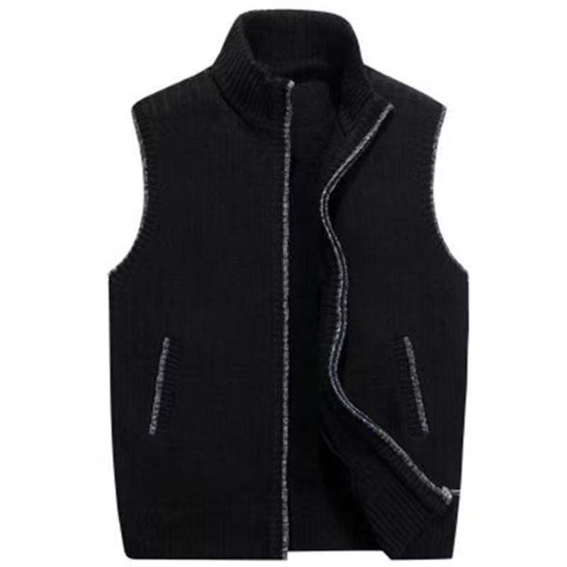 Chaleco de suéter sin mangas de lana de talla grande para hombre con abrigo de cuello alto acolchado de felpa gruesa Chaleco de punto