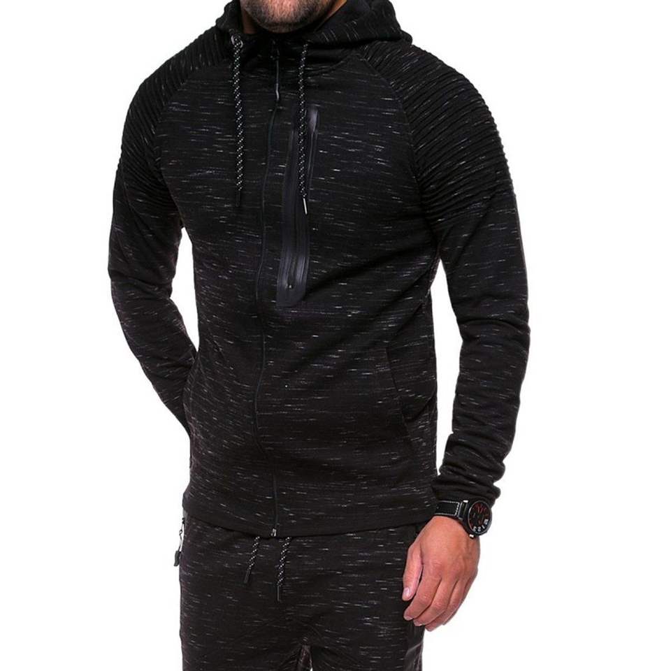 Conjunto de chándal deportivo de dos piezas de lunares para hombre, chaqueta negra con capucha y cremallera y pantalones para correr, ropa deportiva de algodón de secado rápido