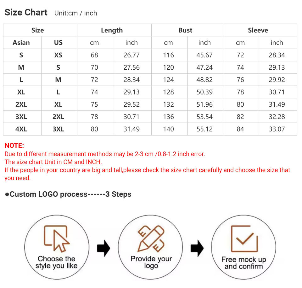 Posición del logotipo:Frente, Espalda, Manga izquierda, Dobladillo inferior, Manga derecha, Cuello trasero