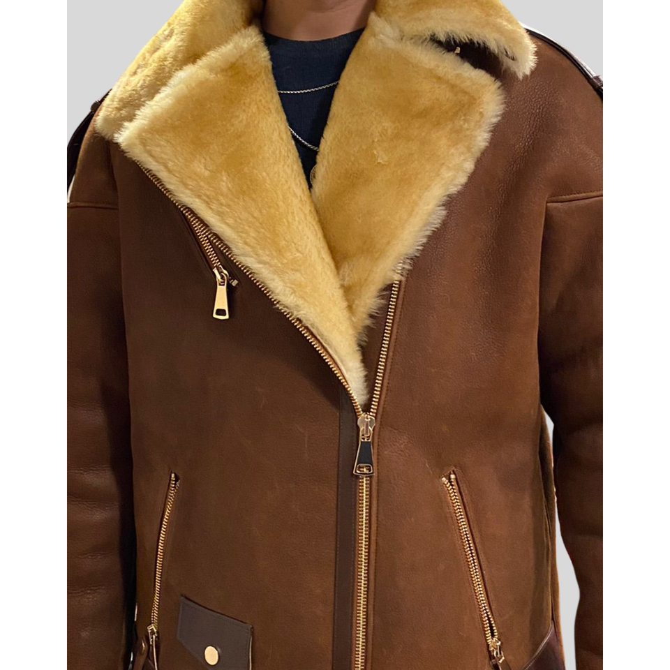 Chaqueta de Biker de Cuero de Oveja Marrón Premium para Hombre con Accesorios Dorados Ropa de Invierno de Lujo con Cierre Asimét