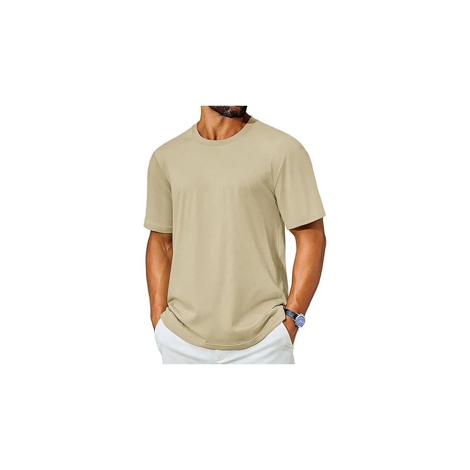 Camisetas de cuello redondo de manga corta de algodón Premium para hombre, camisetas clásicas sólidas básicas informales holgadas con estampado Digital