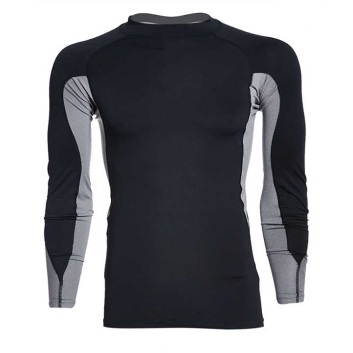 Camiseta de Compresión de Manga Larga para Hombre, Protección Solar UPF50, Secado Rápido, Spandex/Nailon, Colores Sólidos con Paneles en las Mangas