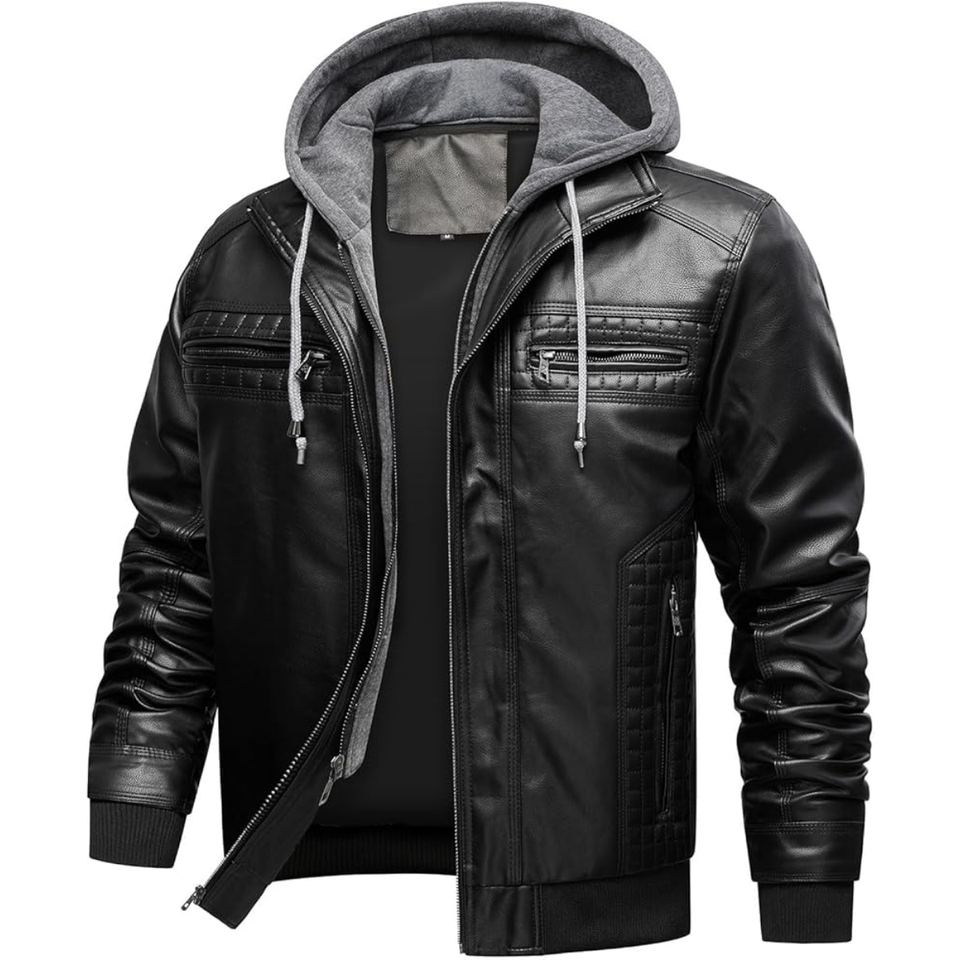 Chaqueta con Capucha de Cuero Sintético para Hombre, Estilo Roadster, Diseñada para Motociclistas que Buscan Comodidad Suave y Construcción Resistente