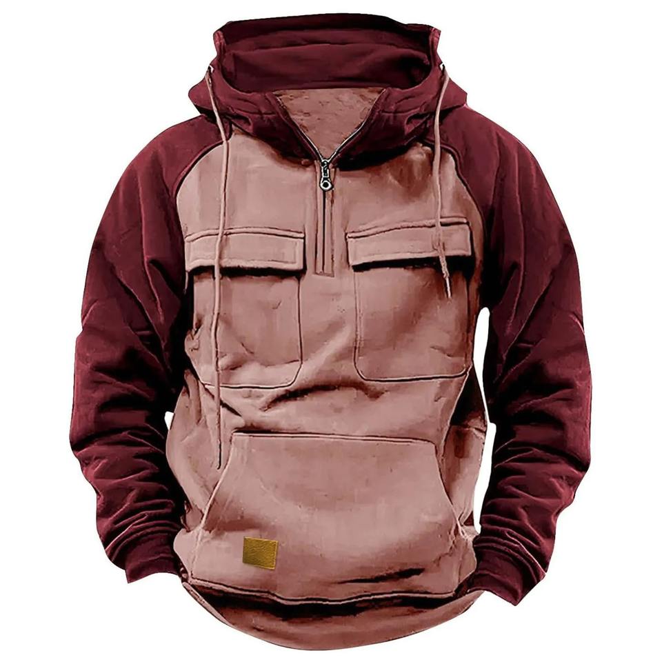 Sudaderas con capucha para hombre, Sudadera con capucha de primavera y otoño, sudaderas holgadas de retazos con bolsillos, ropa de calle informal de manga larga