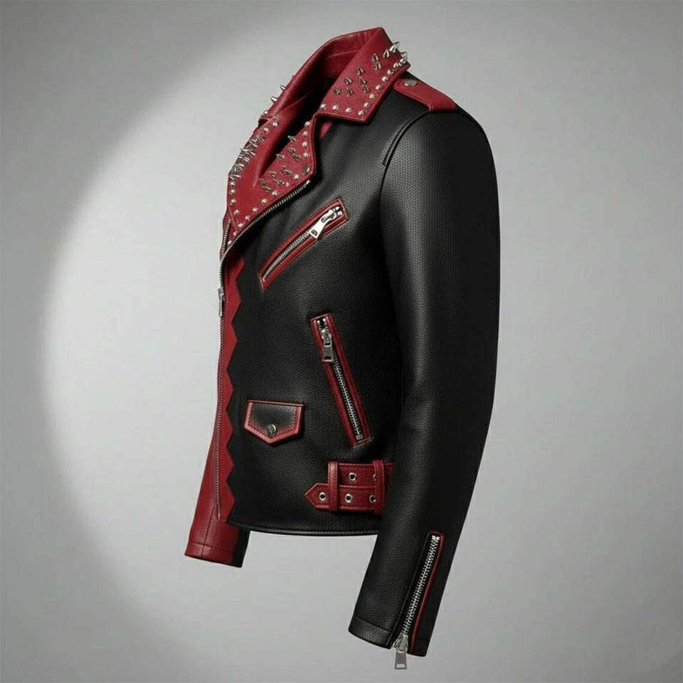 Chaqueta de cuero bicolor con tachuelas estilo punk para hombre, chaqueta gótica de cuero hecha a mano con púas, estilo urbano, completamente nueva.
