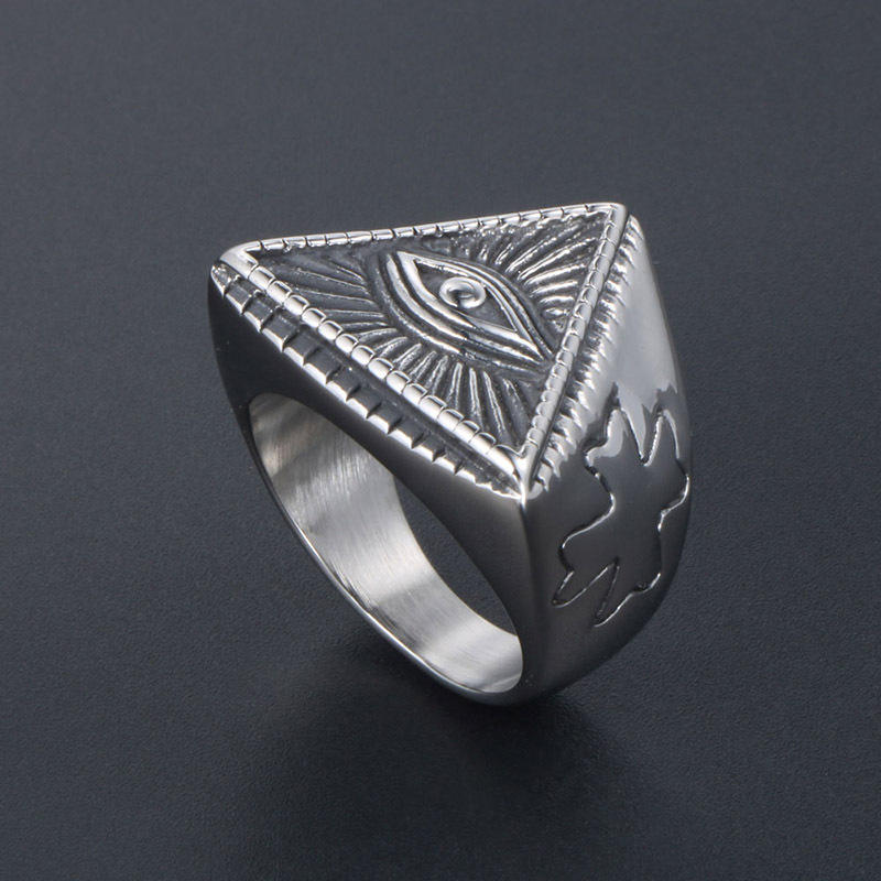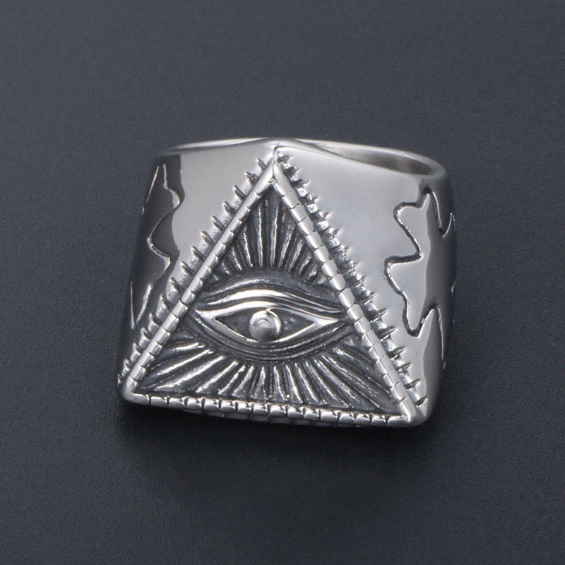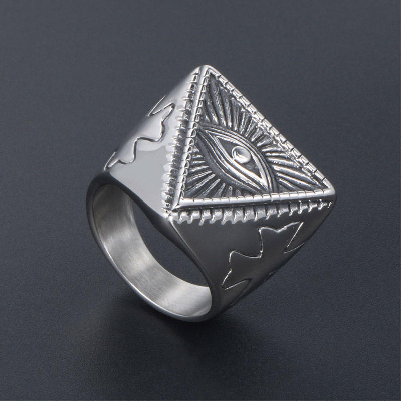 Anillo de acero de titanio con forma de pirámide y ojo turco para hombre, estilo punk vintage, joyería de regalo SA841