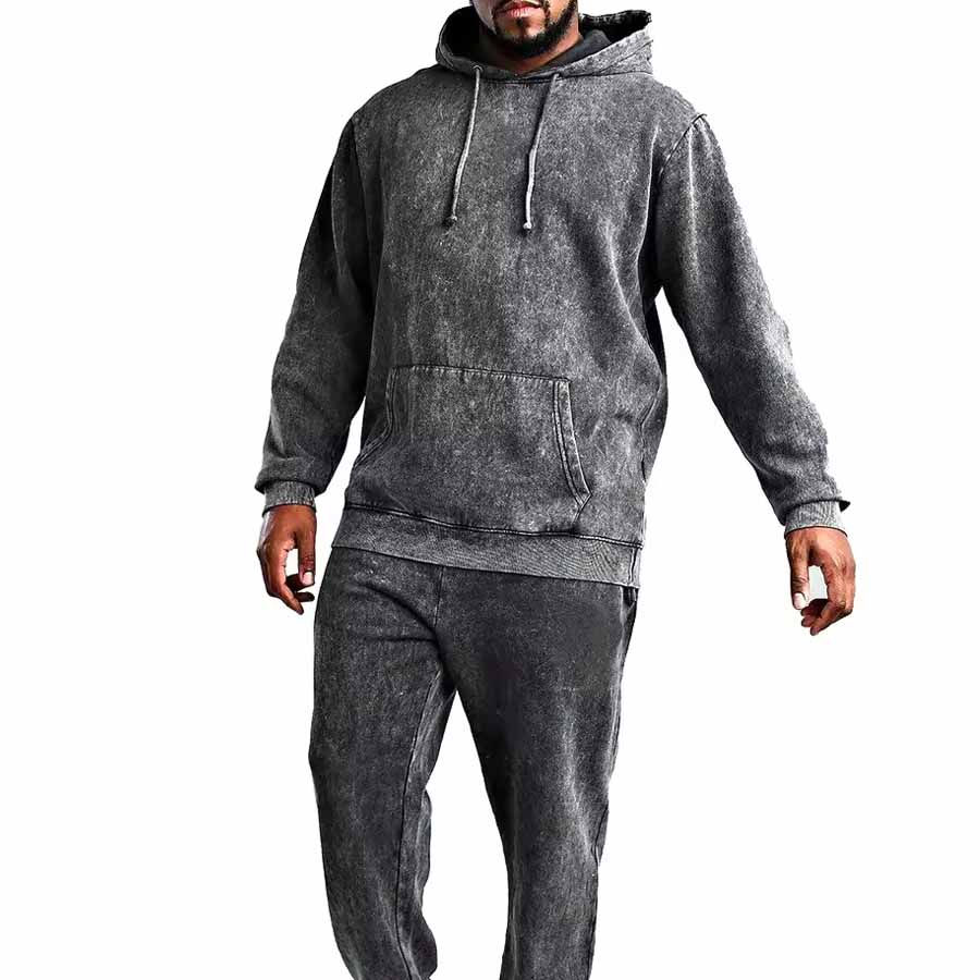 Conjunto Casual de 2 Piezas para Mujer, Secado Rápido, 100% Algodón, Estilo Urbano, Lavado Ácido, Sudadera con Capucha y Pantalones con Cordón, Estampado Invernal