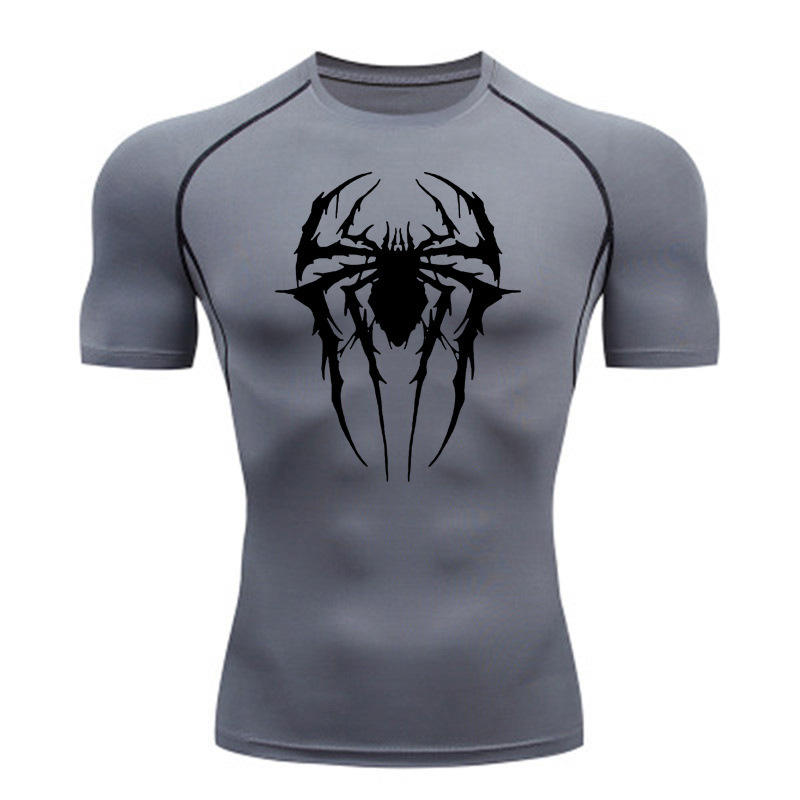 Camiseta Deportiva de Compresión de Secado Rápido para Hombre, Tejido Transpirable de Alta Elasticidad, Diseño Creativo de Araña, Absorbe la Humedad, para Correr y Gimnasio