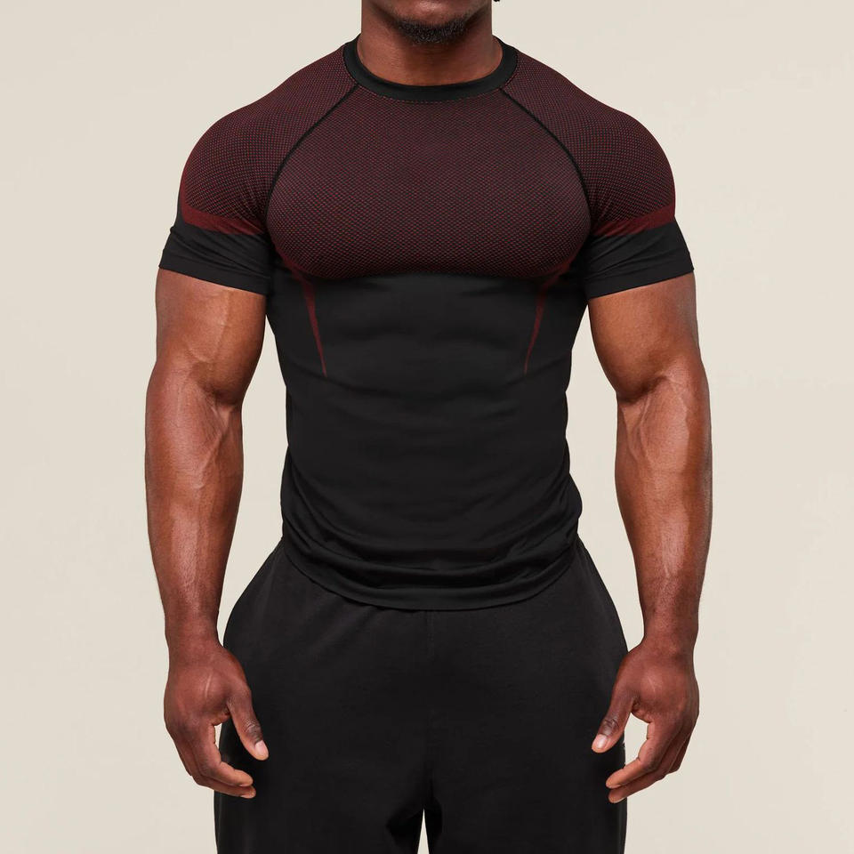 Camiseta Deportiva de Manga Corta para Hombre, de Secado Rápido, Estampada, Elástica, Transpirable, de Poliéster y Seda de Leche, para Levantamiento de Pesas y Fitness
