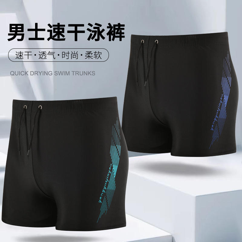Traje de baño de secado rápido para hombre, color negro con patrón azul, talla para adultos, ajuste holgado para nadar, deportes de playa