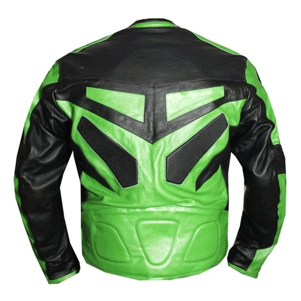 Chaqueta de moto de carreras de cuero genuino negro y verde para hombre