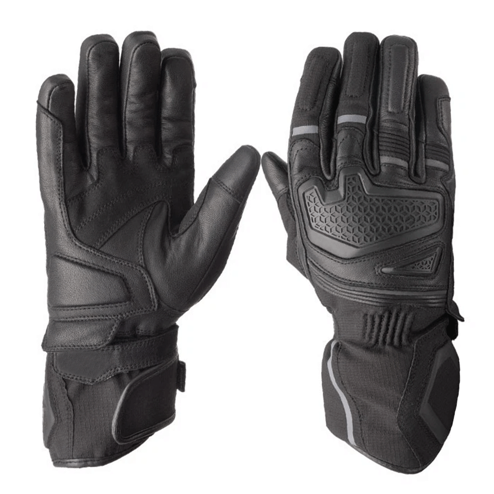 Guantes de moto de carreras unisex para hombre, cuero de vaca genuino negro, textil, impermeables, para motocicleta, carreras de coches, invierno, transpirables