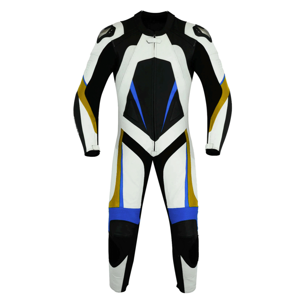 Traje protector de cuero de vaca genuino de carreras para hombre, traje de motocicleta de cuero blanco/Negro/azul con protección blindada CE