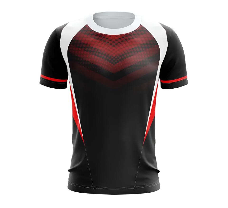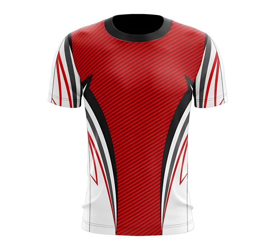 Camiseta Deportiva para Hombre, Diseño Geométrico Rojo y Negro, Estilo Racing Shadow, Ajuste Atlético, Rendimiento Deportivo, Entrenamiento