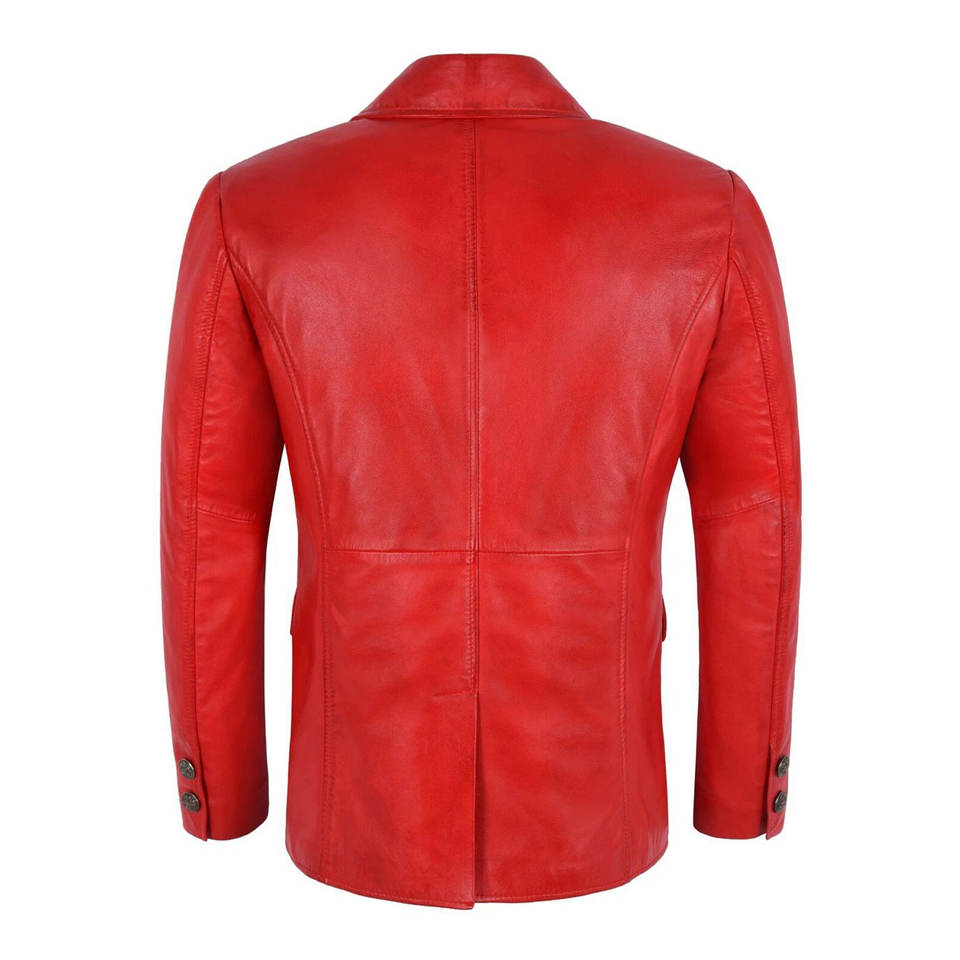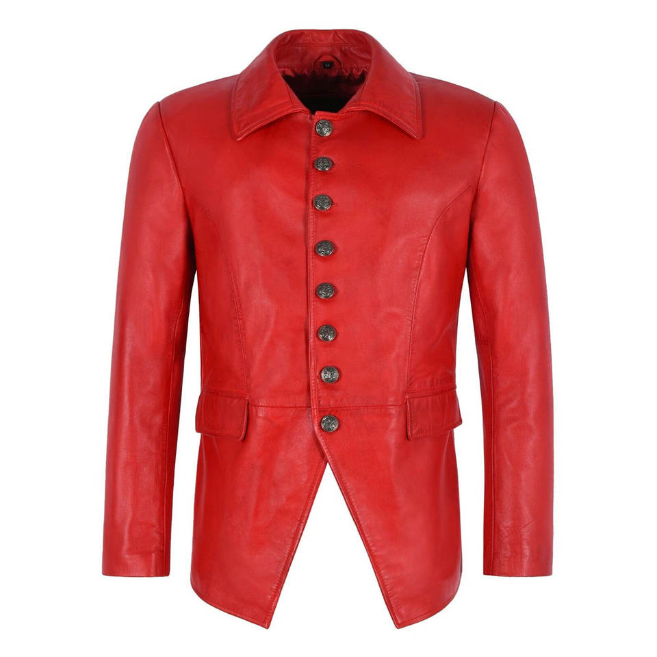 Chaqueta Roja para Hombre, Estilo Gótico Elegante, Chaqueta Camisera de Piel de Cordero Auténtica, Cierre de Botones, Forro de Poliéster, Superventas