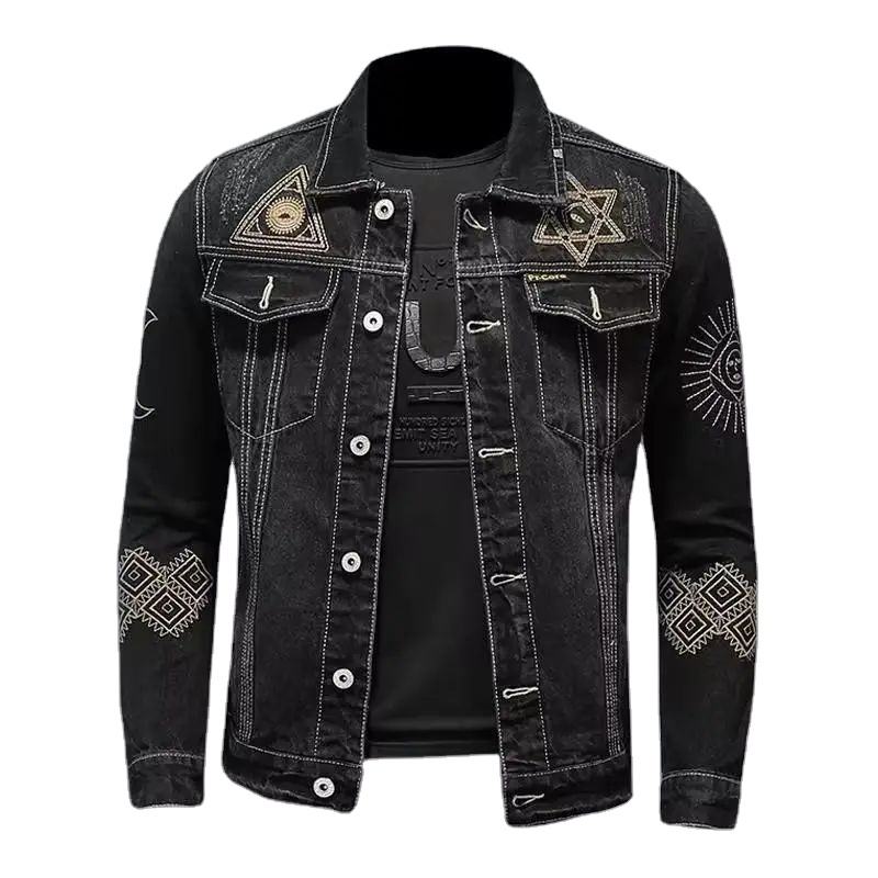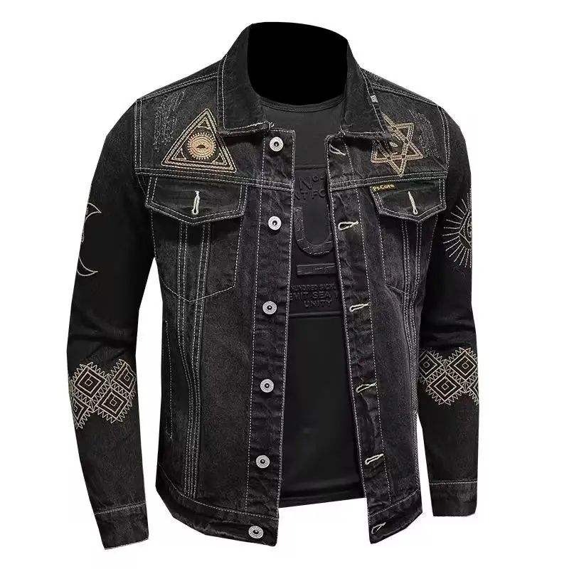 Chaqueta de moto bordada Retro para hombre para primavera moda Otoño clásica lona Denim Top frontal suelto estilo Casual