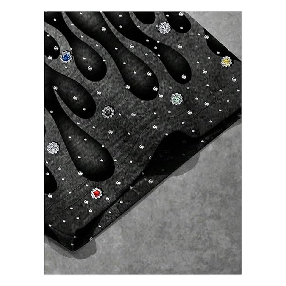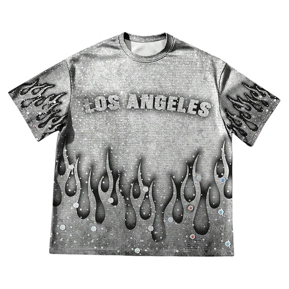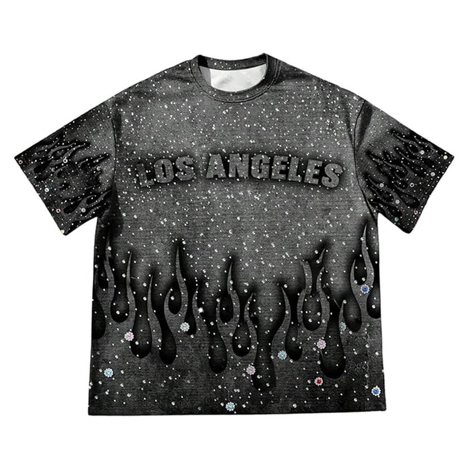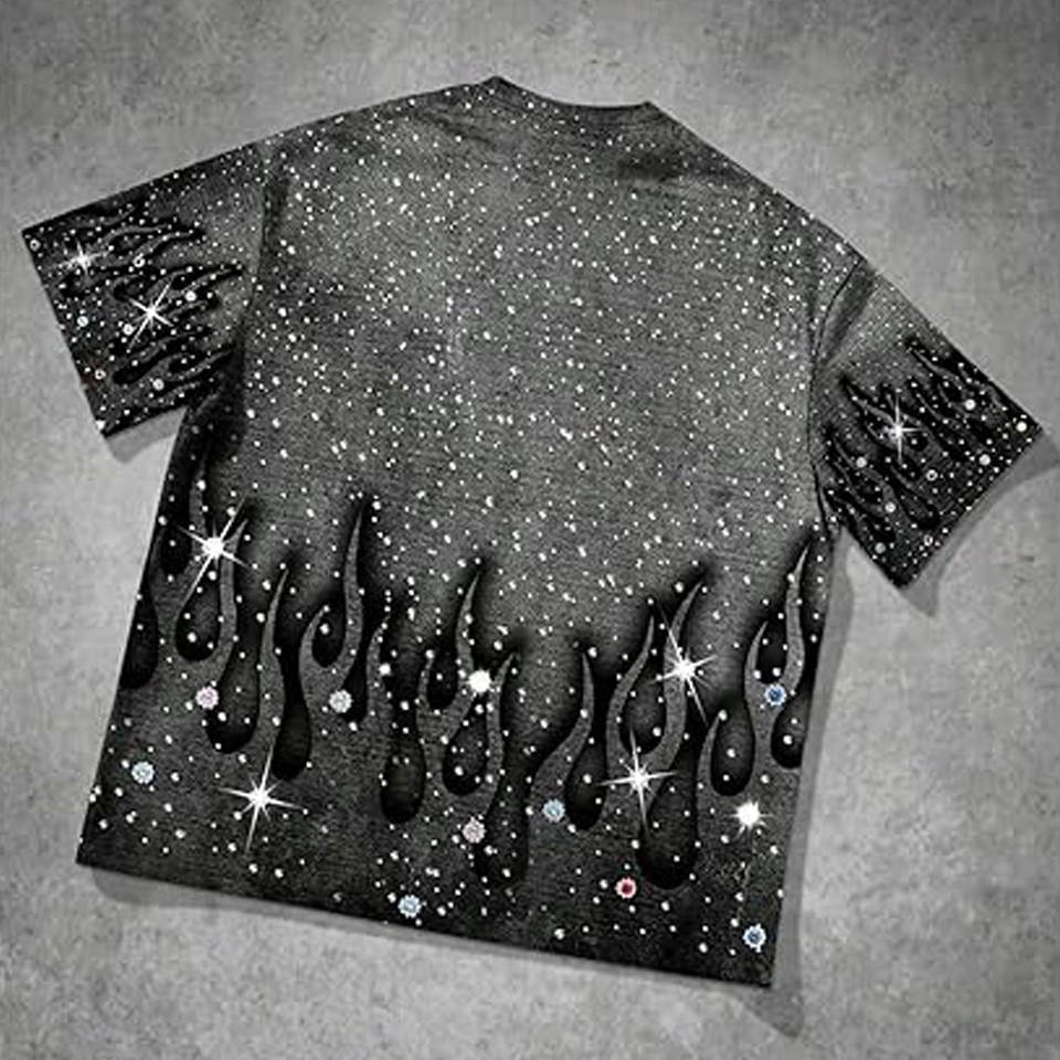 Camiseta gráfica con estampado de diamantes de imitación para hombre, camiseta de manga corta con cuello redondo, camiseta informal de verano de inspiración vintage, Top informal brillante
