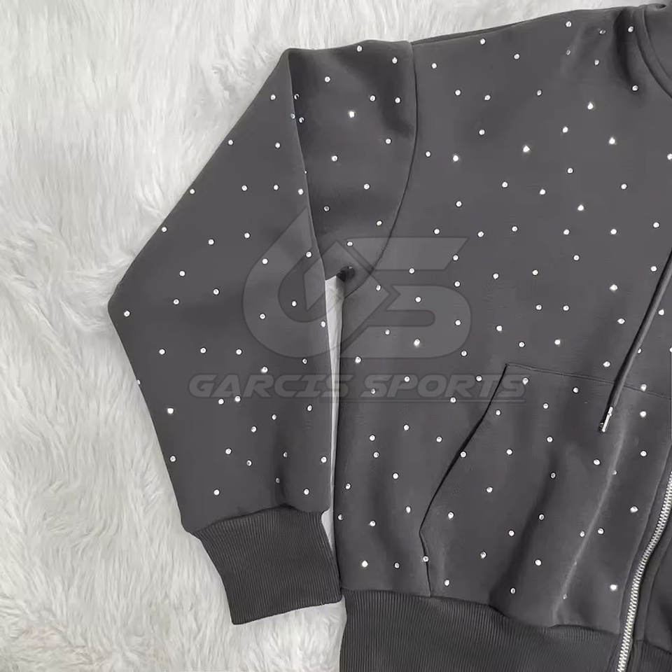 Chándal de diamantes de imitación para hombre Chaqueta con cremallera completa con diseño de cristal brillante Chándal de diamantes de imitación para hombre