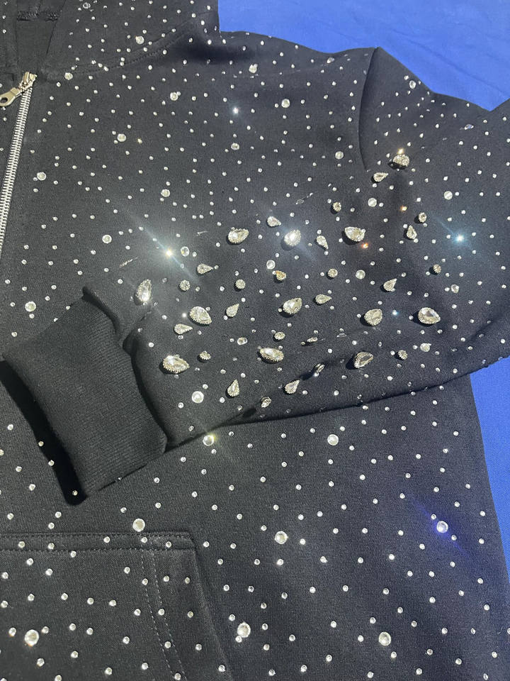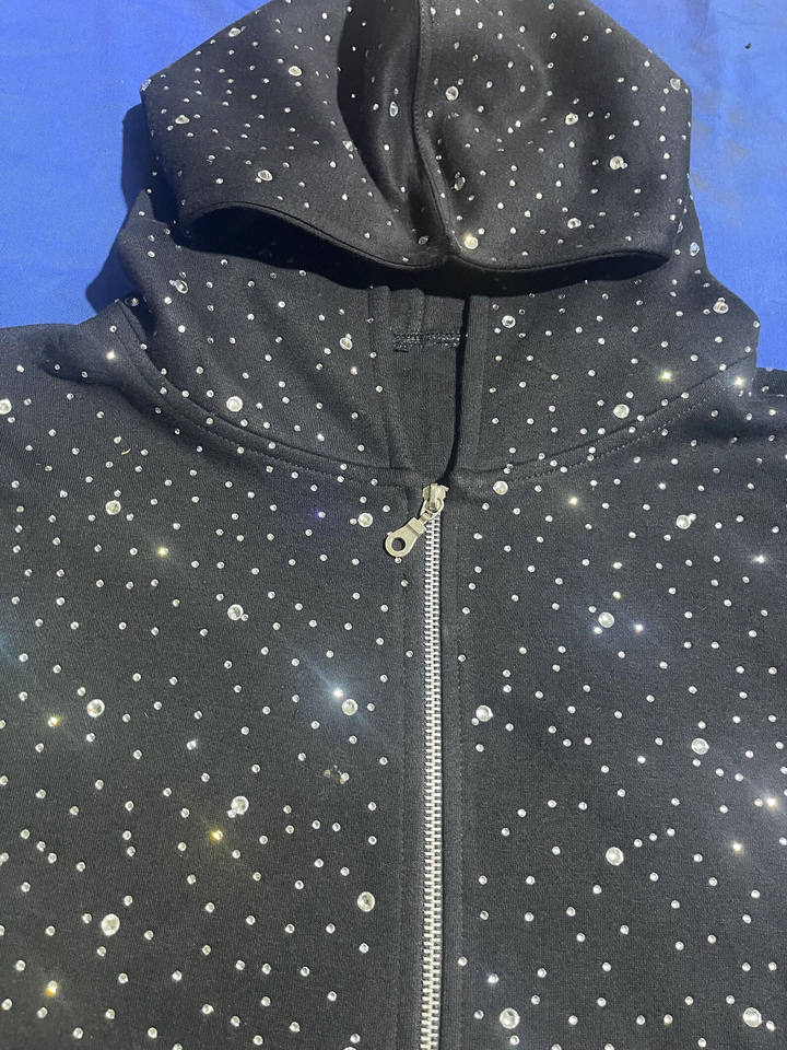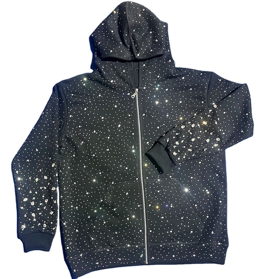 Sudadera con Capucha de Felpa con Cierre y Pedrería para Hombre, Ropa de Calle Abrigada para Invierno, Corte Holgado, Detalles Brillantes, Tejido Grueso, Etiqueta Personalizada