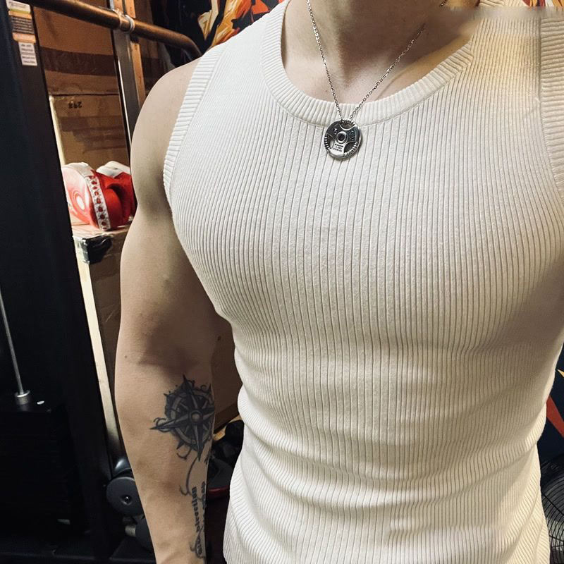 Camiseta sin mangas con ajuste muscular acanalado para hombre, chaleco de gimnasio sin mangas con logotipo personalizado, ajustado y elástico