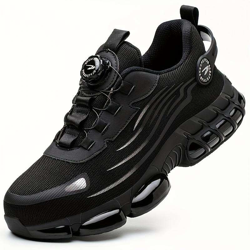 Zapatos de Seguridad con Botón Giratorio para Hombre, con Puntera de Acero, Resistentes a Pinchazos, Botas de Trabajo con Amortiguación de Aire, Zapatillas Deportivas Anti-Impactos