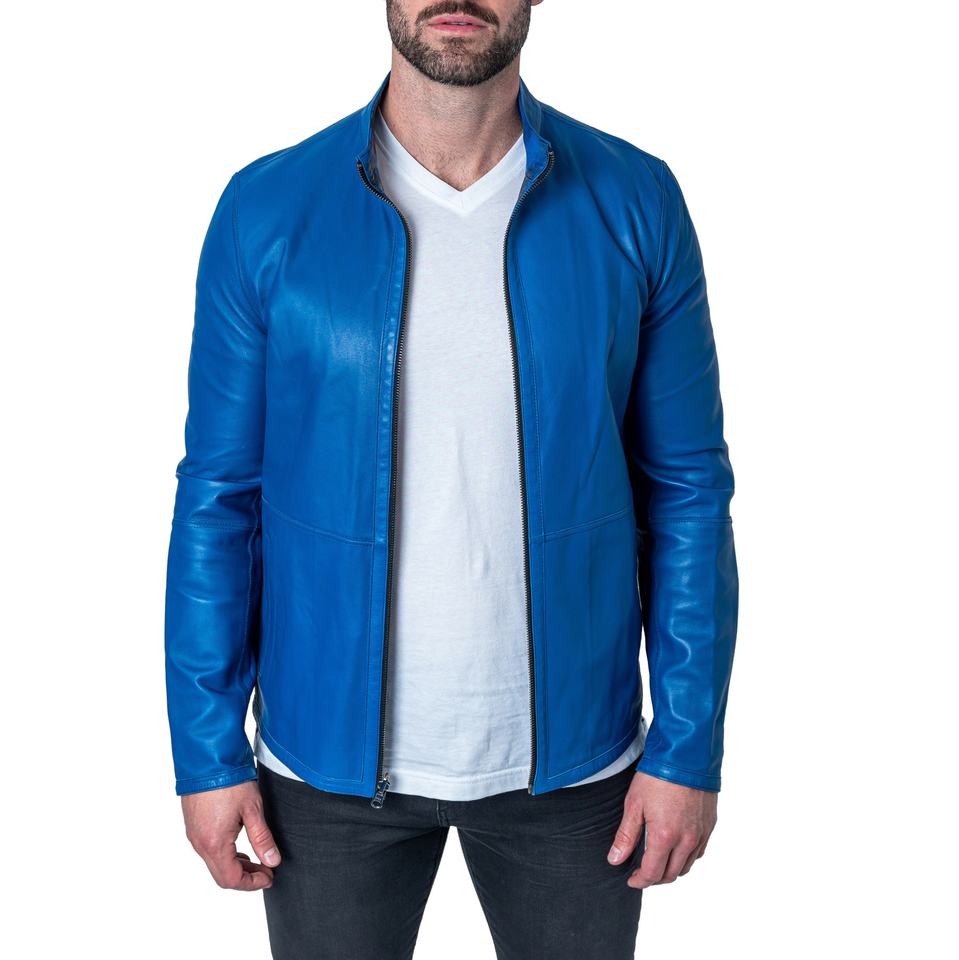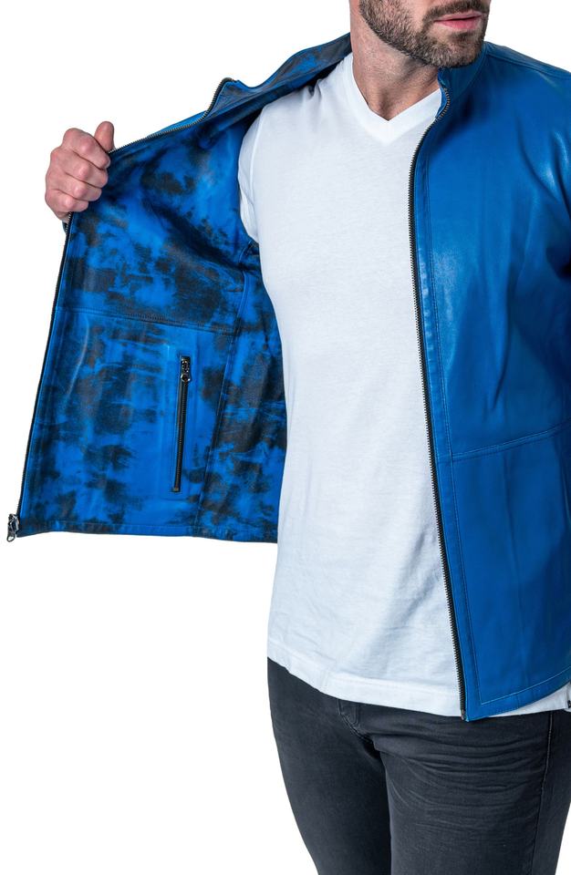 Chaqueta de piel de oveja para hombre con cuello azul ajustable y piel sintética chaqueta azul de piel de cordero suave para hombre