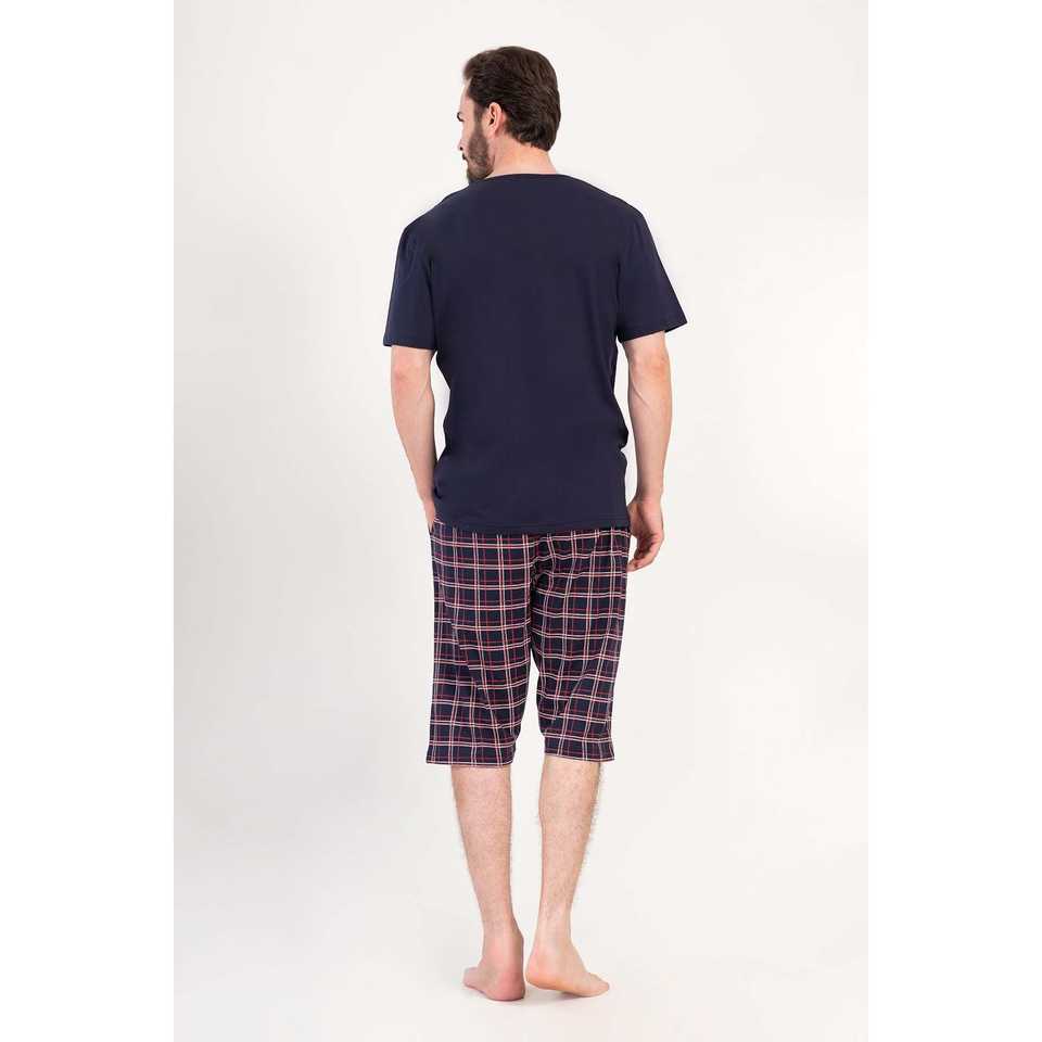 Conjunto de Camiseta de Manga Corta y Pantalones Capri para Hombre, con Bolsillos, Cuello Redondo, Transpirable, Estampado Veraniego