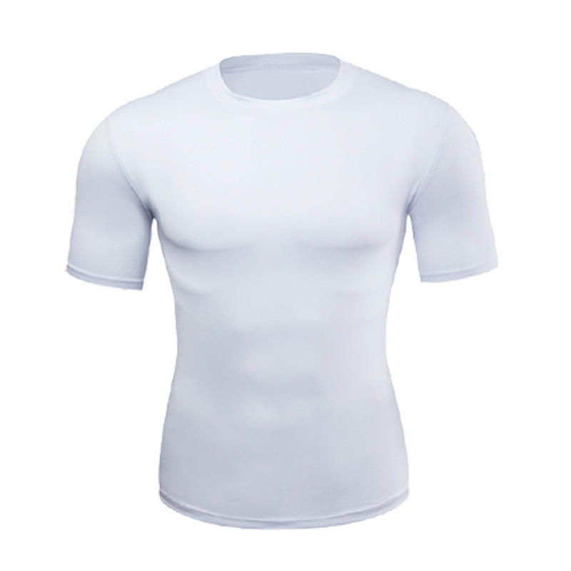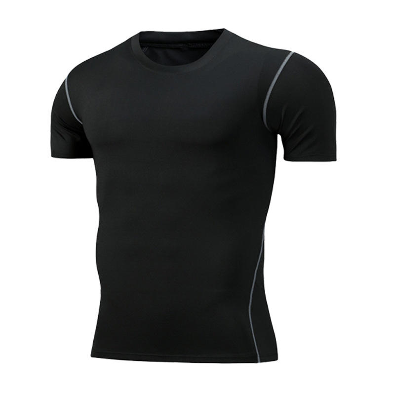 Camiseta Deportiva de Compresión de Manga Corta para Hombre, de Secado Rápido, Transpirable, para Correr, de Color Sólido, Tejida en Poliéster/Algodón