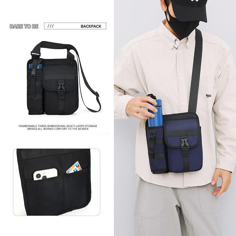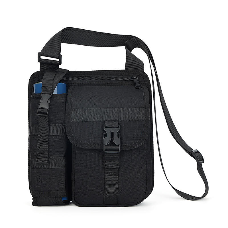 Bolso de hombro para hombre de 13 pulgadas, ligero, para viajes al aire libre, con bolsillo para botella de agua, color sólido