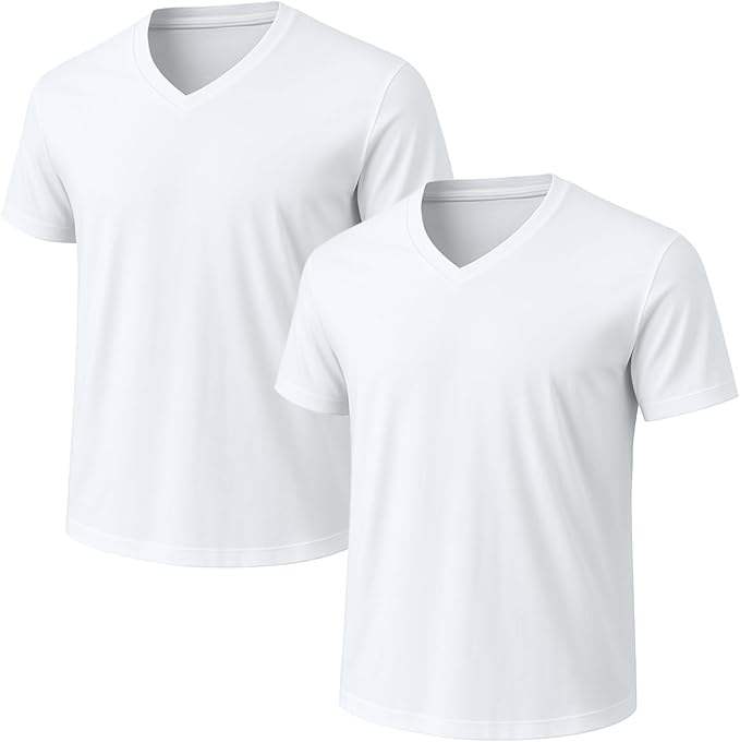 Camiseta de Manga Corta con Cuello en V para Hombre, de Seda, con Ribete en Contraste, de Poliéster/Algodón, Antiarrugas, Ecológica, Transpirable, para Uso Diario