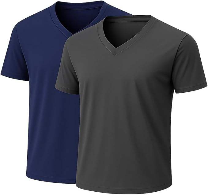 Camiseta de Cuello en V para Hombre, Estampada con Serigrafía, de Poliéster/Algodón, Antiarrugas, Ecológica, Transpirable, Ligera y de Secado Rápido