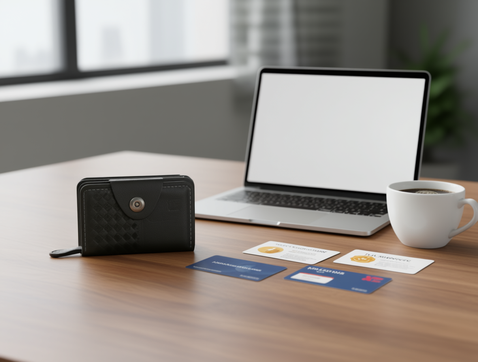 Tarjetero de Cuero PU de 4 Pulgadas con un Solo Botón para Hombre, Estuche para Tarjetas de Visita